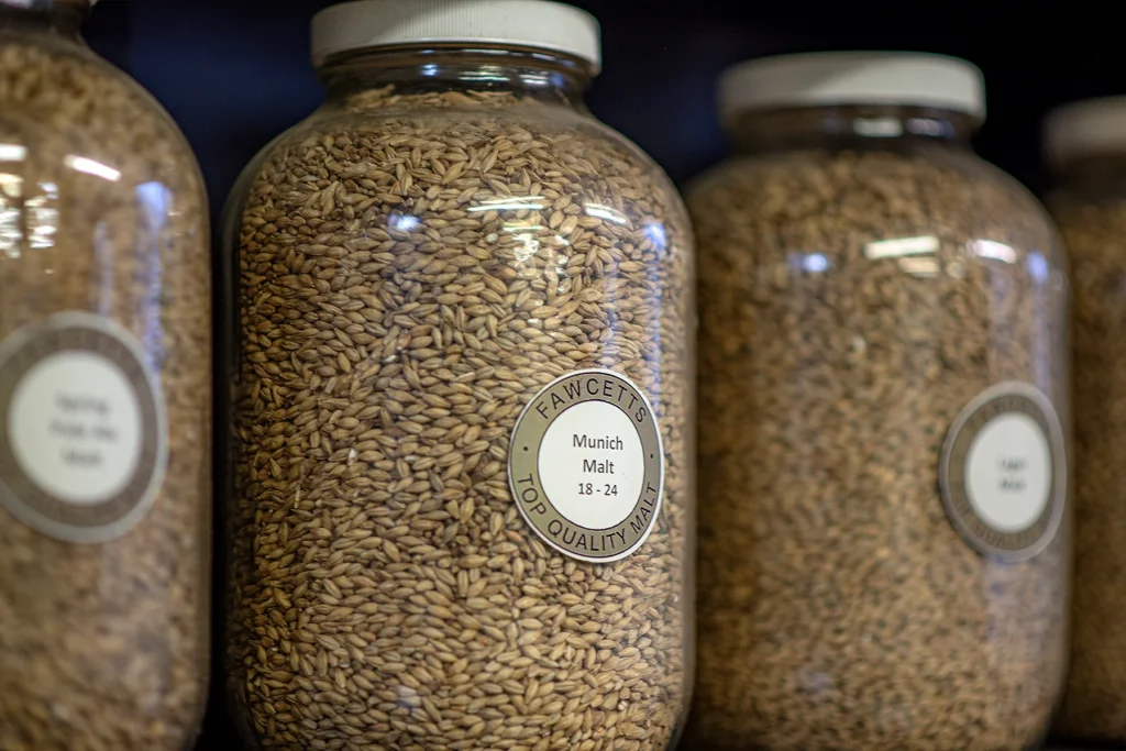 These are Pale malts, fully modified and then stewed slightly before kiln drying. As such, some of the starch has been converted to sugar and the higher temperature kilning produces a darker malt with very strong, sweet, “malty” aroma and flavour. Although these malts have lower diastatic power due to some of the enzymes being denatured, the majority are preserved, allowing them to be used at relatively high percentages within the grist and still get full saccharification. They produce very full-bodied, sweet malty beers.